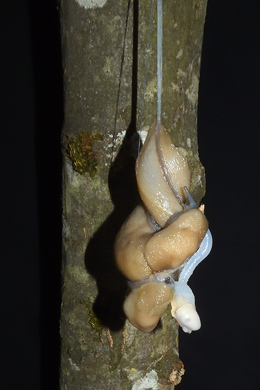 Paarungsablauf Limax cf. strobeli Die endgültige Länge des Schleimfadens variiert von etwa 30 cm bis zu gemäss Literaturangaben 100 cm. Bei dieser Paarung weist der Schleimfaden eine Länge von 31 cm auf. Informationen zum Tier: Art: Blauköpfiger Schnegel (Limax cf. strobeli). |