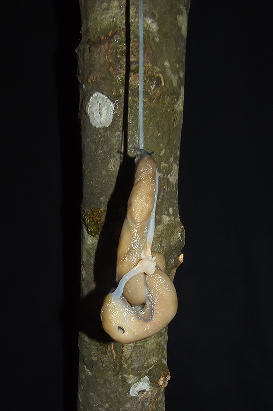 Paarungsablauf Limax cf. strobeli Die endgültige Länge des Schleimfadens variiert von etwa 30 cm bis zu gemäss Literaturangaben 100 cm. Bei dieser Paarung weist der Schleimfaden eine Länge von 31 cm auf. Informationen zum Tier: Art: Blauköpfiger Schnegel (Limax cf. strobeli). |