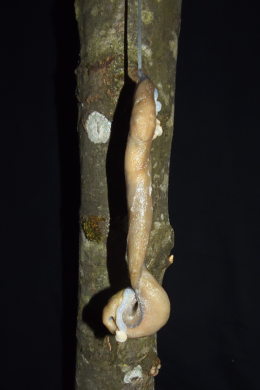Paarungsablauf Limax cf. strobeli Die endgültige Länge des Schleimfadens variiert von etwa 30 cm bis zu gemäss Literaturangaben 100 cm. Bei dieser Paarung weist der Schleimfaden eine Länge von 31 cm auf. Informationen zum Tier: Art: Blauköpfiger Schnegel (Limax cf. strobeli). |