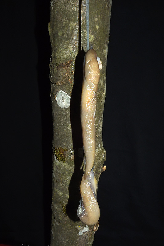 Paarungsablauf Limax cf. strobeli Die endgültige Länge des Schleimfadens variiert von etwa 30 cm bis zu gemäss Literaturangaben 100 cm. Bei dieser Paarung weist der Schleimfaden eine Länge von 31 cm auf. Informationen zum Tier: Art: Blauköpfiger Schnegel (Limax cf. strobeli). |