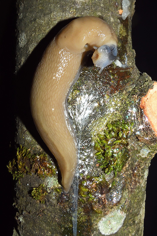 Paarungsablauf Limax cf. strobeli Die endgültige Länge des Schleimfadens variiert von etwa 30 cm bis zu gemäss Literaturangaben 100 cm. Bei dieser Paarung weist der Schleimfaden eine Länge von 31 cm auf. Informationen zum Tier: Art: Blauköpfiger Schnegel (Limax cf. strobeli). |