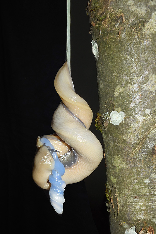 Paarungsablauf Limax cf. strobeli Die endgültige Länge des Schleimfadens variiert von etwa 30 cm bis zu gemäss Literaturangaben 100 cm. Bei dieser Paarung weist der Schleimfaden eine Länge von 62 cm auf. Informationen zum Tier: Art: Blauköpfiger Schnegel (Limax cf. strobeli). |