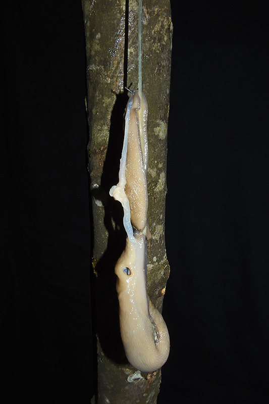 Paarungsablauf Limax cf. strobeli Die endgültige Länge des Schleimfadens variiert von etwa 30 cm bis zu gemäss Literaturangaben 100 cm. Bei dieser Paarung weist der Schleimfaden eine Länge von 62 cm auf. Informationen zum Tier: Art: Blauköpfiger Schnegel (Limax cf. strobeli). |