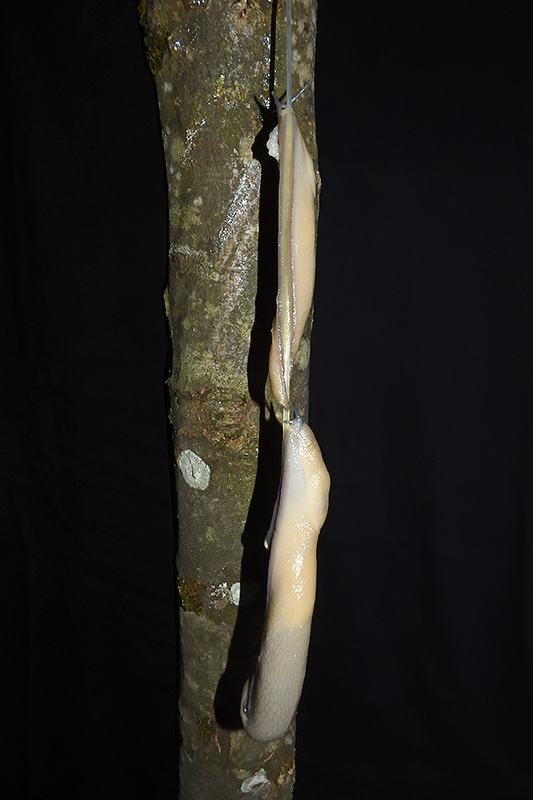 Paarungsablauf Limax cf. strobeli Die endgültige Länge des Schleimfadens variiert von etwa 30 cm bis zu gemäss Literaturangaben 100 cm. Bei dieser Paarung weist der Schleimfaden eine Länge von 62 cm auf. Informationen zum Tier: Art: Blauköpfiger Schnegel (Limax cf. strobeli). |