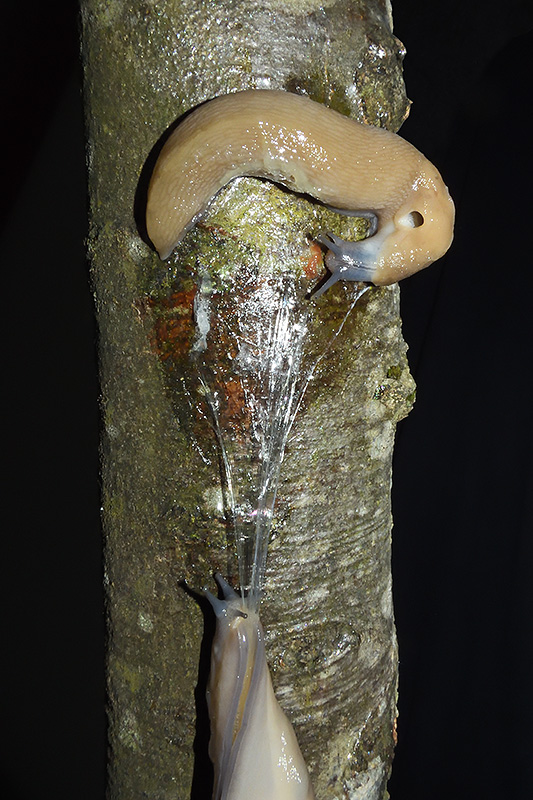 Paarungsablauf Limax cf. strobeli Die endgültige Länge des Schleimfadens variiert von etwa 30 cm bis zu gemäss Literaturangaben 100 cm. Bei dieser Paarung weist der Schleimfaden eine Länge von 62 cm auf. Informationen zum Tier: Art: Blauköpfiger Schnegel (Limax cf. strobeli). |