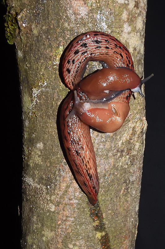 Paarungsablauf Purpurschnegel (Limax cf. dacampi) Die endgültige Länge des Schleimfadens beträgt gemäss Literaturangaben um 20 cm. Bei dieser Paarung weist der Schleimfaden eine Länge von 19 cm auf. Informationen zum Tier: Art: Purpurschnegel (Limax cf. dacampi). |