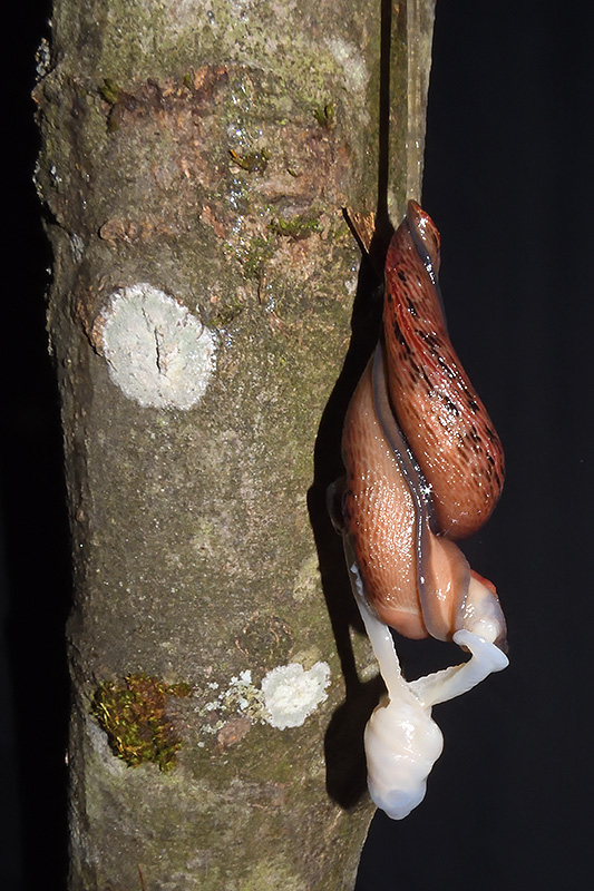 Paarungsablauf Purpurschnegel (Limax cf. dacampi) Die endgültige Länge des Schleimfadens beträgt gemäss Literaturangaben um 20 cm. Bei dieser Paarung weist der Schleimfaden eine Länge von 19 cm auf. Informationen zum Tier: Art: Purpurschnegel (Limax cf. dacampi). |