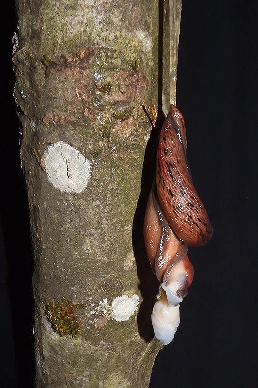 Paarungsablauf Purpurschnegel (Limax cf. dacampi) Die endgültige Länge des Schleimfadens beträgt gemäss Literaturangaben um 20 cm. Bei dieser Paarung weist der Schleimfaden eine Länge von 19 cm auf. Informationen zum Tier: Art: Purpurschnegel (Limax cf. dacampi). |