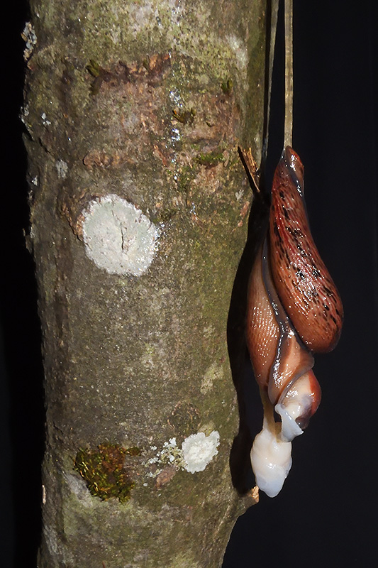 Paarungsablauf Purpurschnegel (Limax cf. dacampi) Die endgültige Länge des Schleimfadens beträgt gemäss Literaturangaben um 20 cm. Bei dieser Paarung weist der Schleimfaden eine Länge von 19 cm auf. Informationen zum Tier: Art: Purpurschnegel (Limax cf. dacampi). |