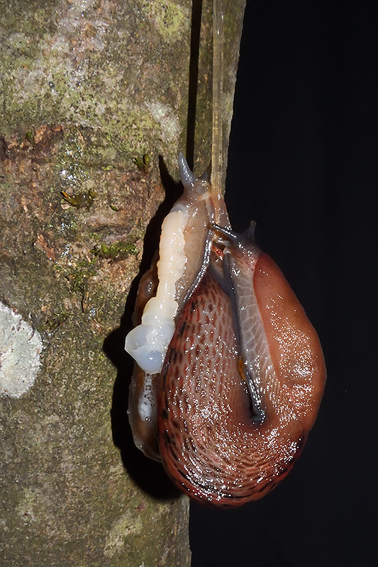 Paarungsablauf Purpurschnegel (Limax cf. dacampi) Die endgültige Länge des Schleimfadens beträgt gemäss Literaturangaben um 20 cm. Bei dieser Paarung weist der Schleimfaden eine Länge von 19 cm auf. Informationen zum Tier: Art: Purpurschnegel (Limax cf. dacampi). |