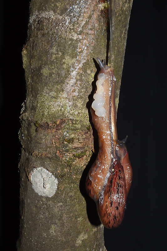 Paarungsablauf Purpurschnegel (Limax cf. dacampi) Die endgültige Länge des Schleimfadens beträgt gemäss Literaturangaben um 20 cm. Bei dieser Paarung weist der Schleimfaden eine Länge von 19 cm auf. Informationen zum Tier: Art: Purpurschnegel (Limax cf. dacampi). |