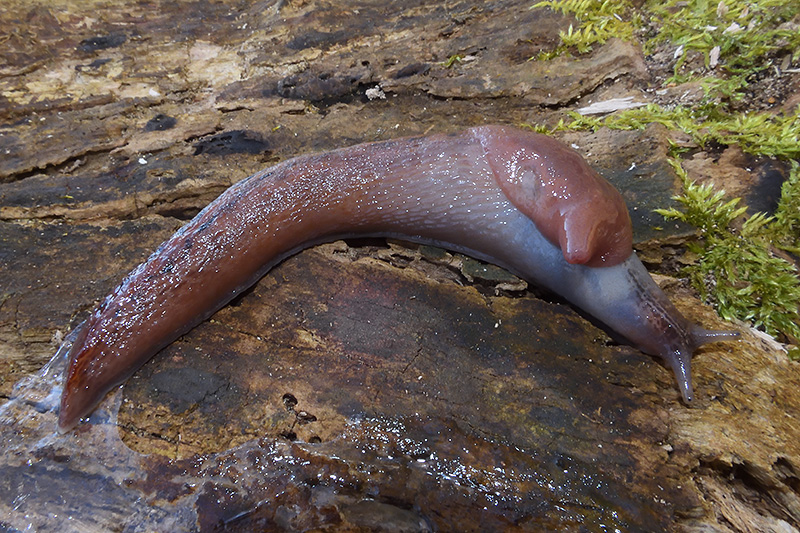 Dieser Purpurschnegel zeigt seine Bursa copulatrix. ein Organ zur Verarbeitung überschüssigen Spermas. Informationen zum Tier: Art: Purpurschnegel (Limax cf. dacampi). |